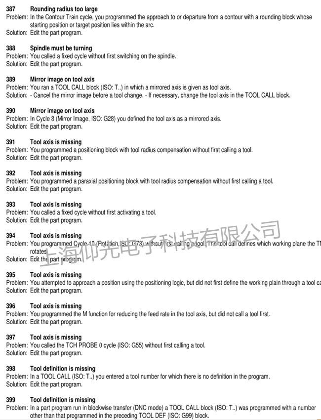 海德漢heidenhain530維修報(bào)警說(shuō)明如下圖: