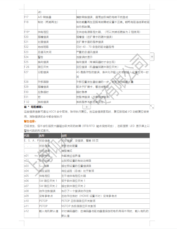 這些錯誤信息可通過ASCII命令取消,除非執(zhí)行復位。當這些錯誤顯現(xiàn)時,復位按鈕或I∕O功能復位被使用,消除錯誤的命令都會被執(zhí)行