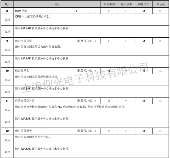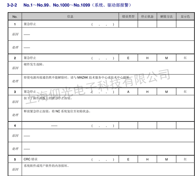 馬扎克數(shù)控系統(tǒng)維修報警代碼如下: