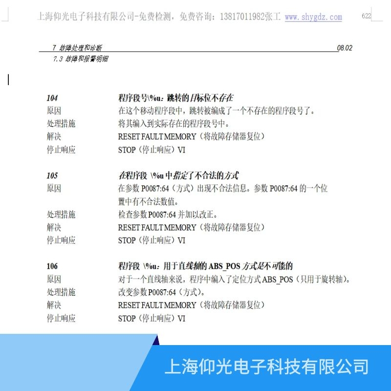 故障代碼解析:104程序段號\%u:跳轉的目標位不存在-西門子611u驅動電源報104故障代碼維修